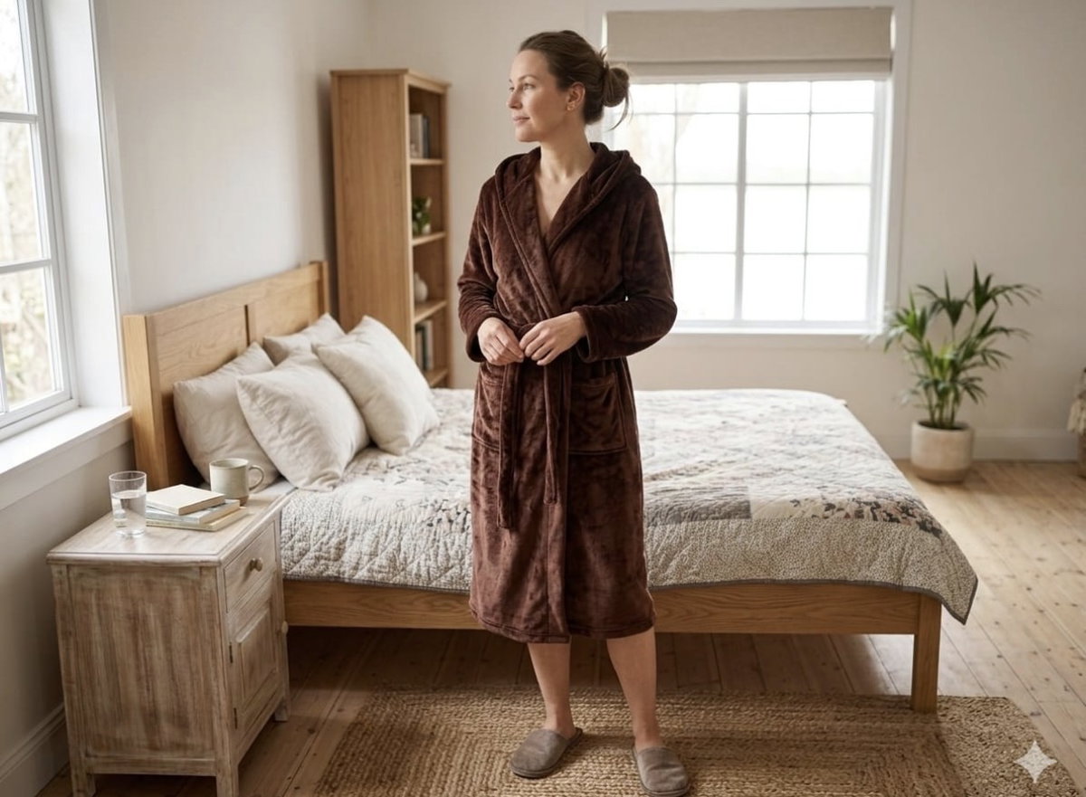 Bata Polar soft con bolsillos por delante y lazo en la cintura suuuper calentita.