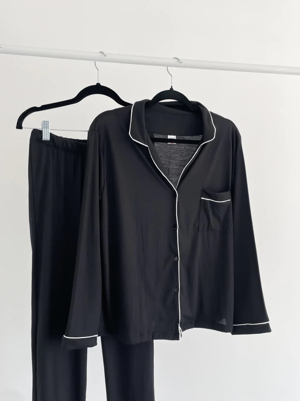 Pijama camisero de spum, con vivo blanco y botones negros.
