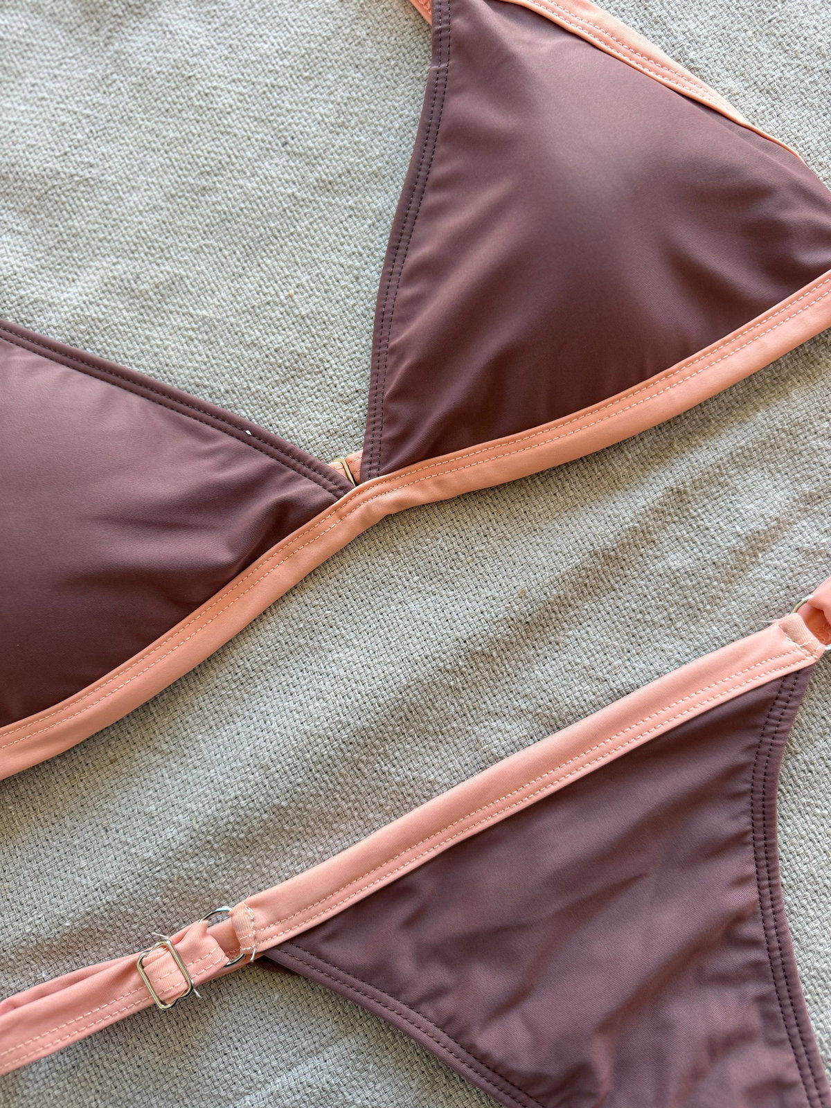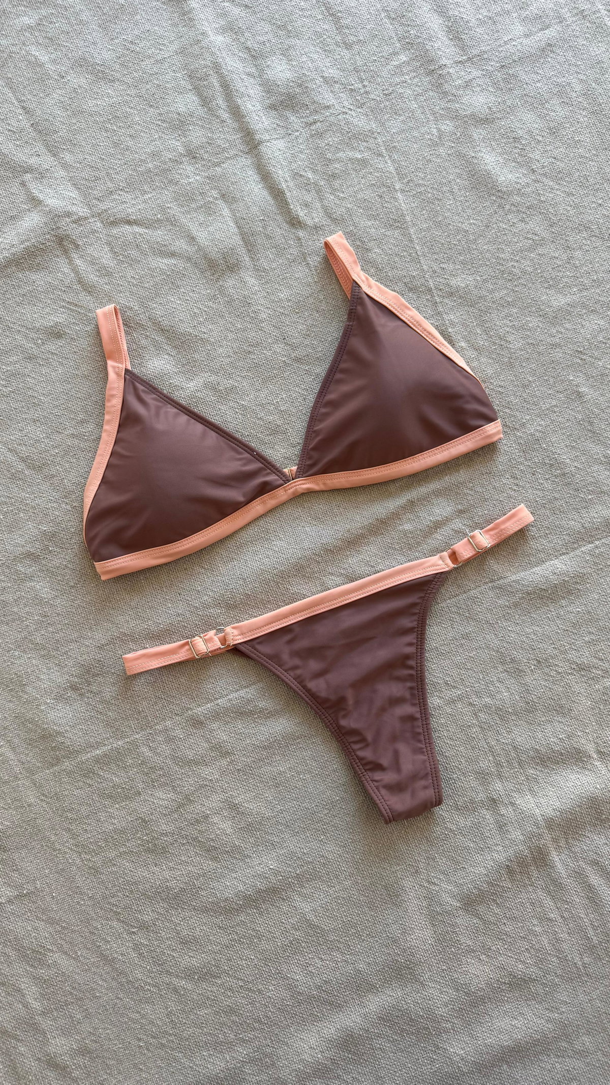 Bikini bicolor con triangulo regulable y bombacha colaless regulable