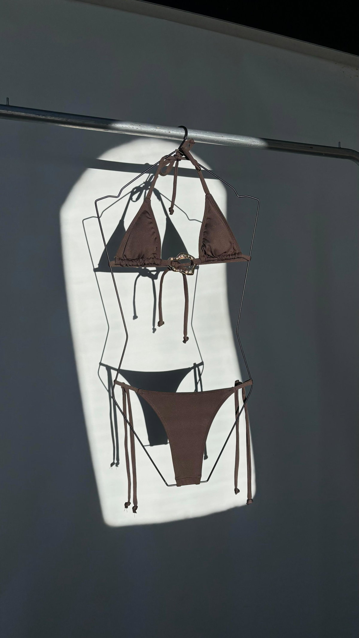 triangulito con tiras en cuello y espalda totalmente regulables (sin tazas) con bombi colaless para atar unicamente con avio importado resistente al sol, cloro y sal, totalmente comprobado por nosotras ;)