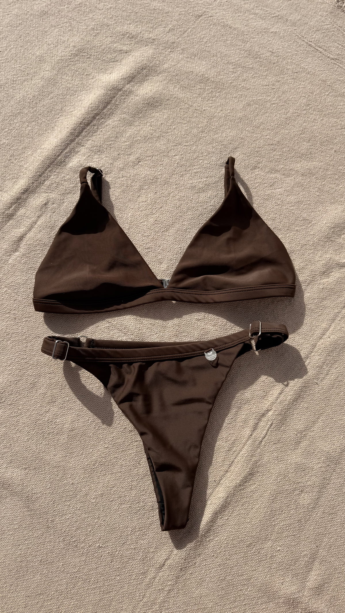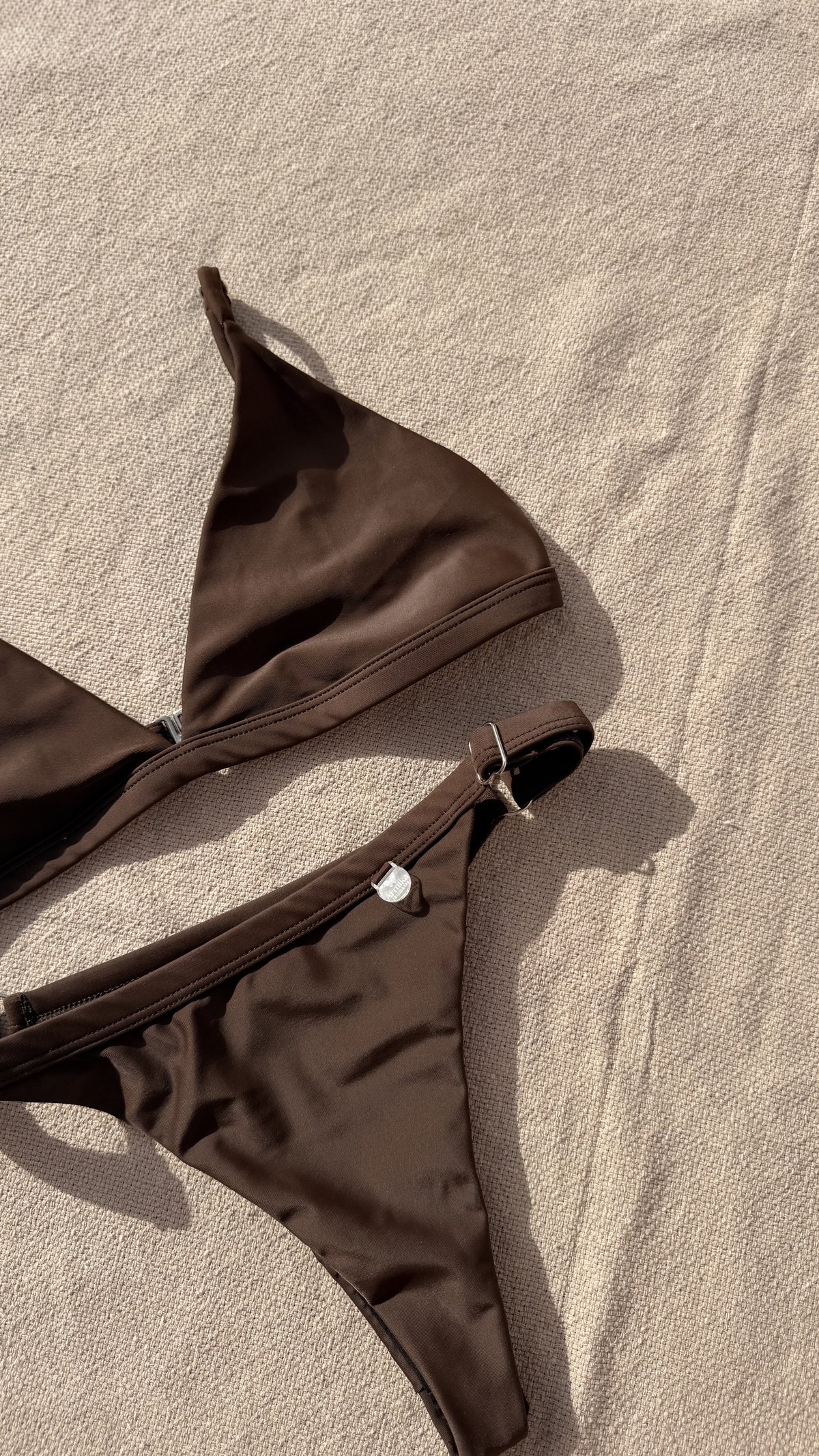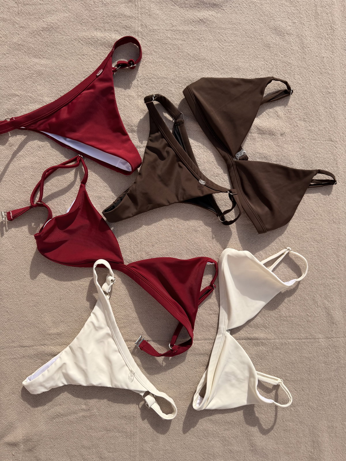 Bikini embolsada con corpiño con elástico bajo busto y breteles con ajustables, espalda con gancho