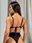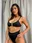 Corpiño tipo top con detalle de avío metálico en el centro, es de zamac, no se oxida ni calienta. Breteles regulables, espalda para atar, tazas soft desmontables. Bombacha tiro alto con cintura, colaless.