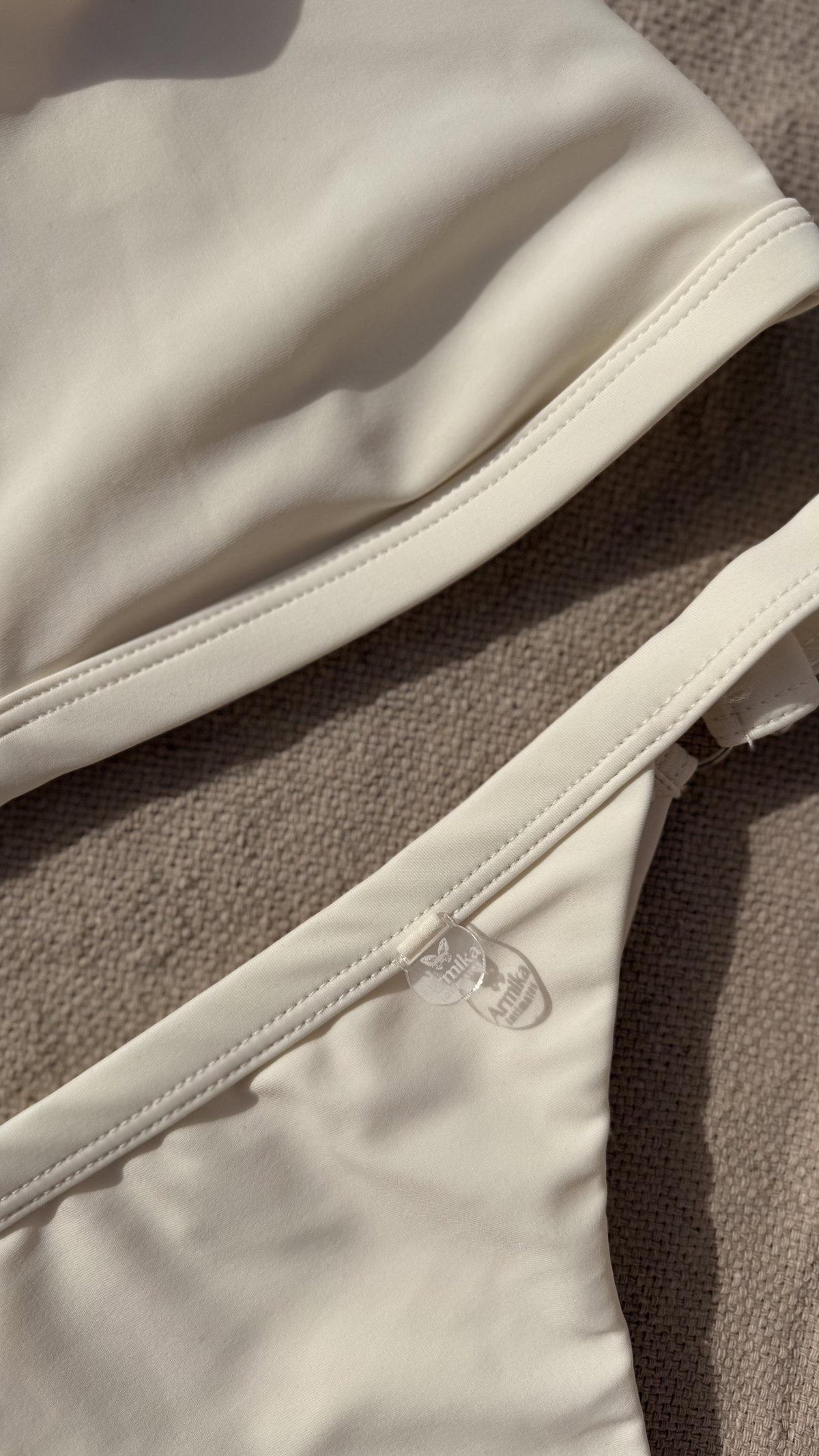 Bikini embolsada con corpiño con elástico bajo busto y breteles con ajustables, espalda con gancho