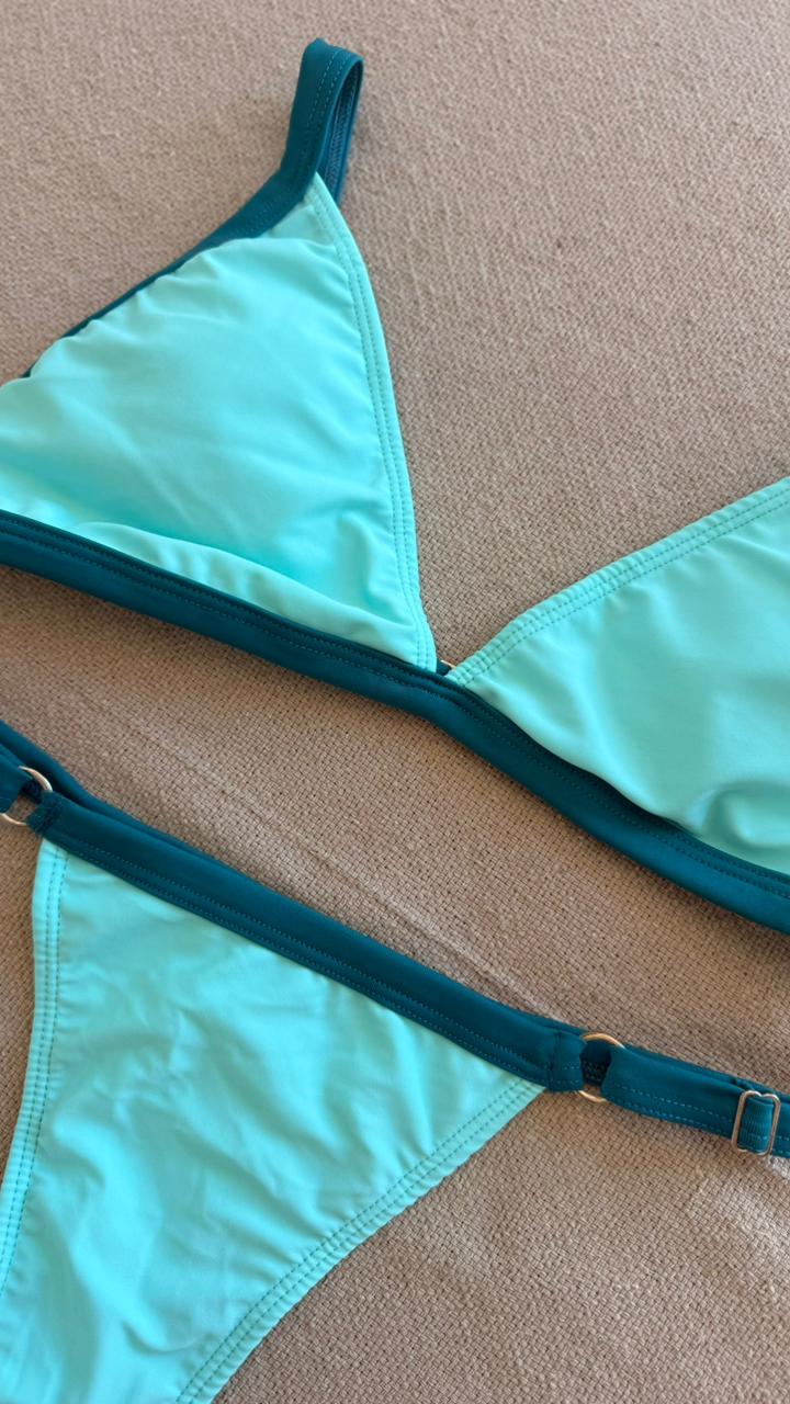 Bikini bicolor con triangulo regulable y bombacha colaless regulable